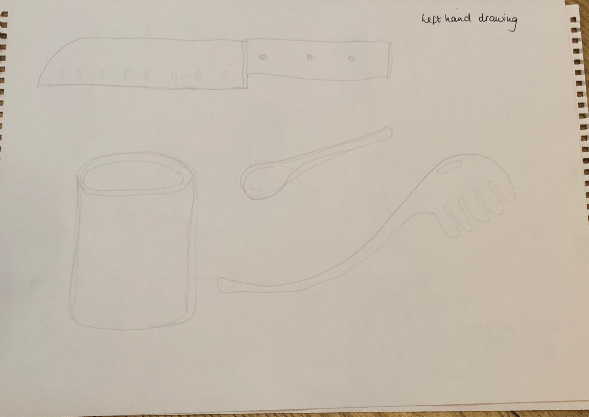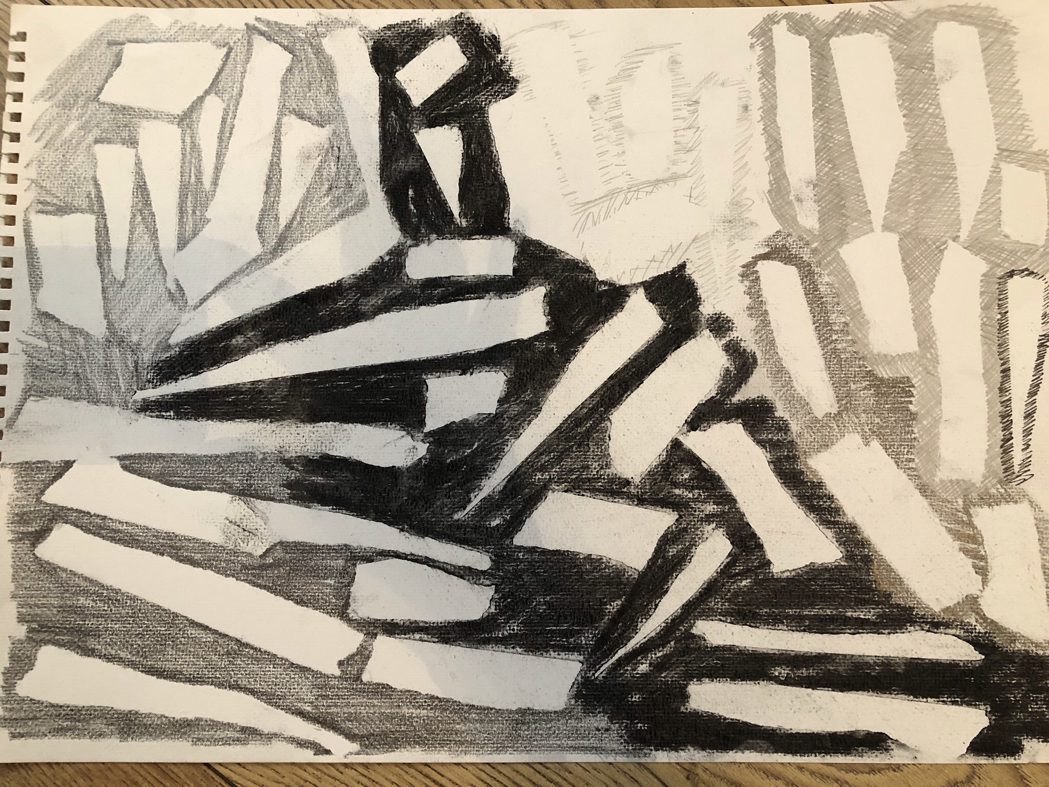 Again, I was over critical of the above sketches, even though my tutor had provided links to an artist who does use the above approach. I did think the close up section of wood did convey texture as I worked into it over and over again with a mixture of mark making tools and colours. I also seem to not be able to sketch straight as all the sketches above were somewhat lopsided. The pencil sketch worked the best, I liked the pencil as it was actually one out of a voting booth, they were all getting thrown away due to infection control so I had to bring a couple home!