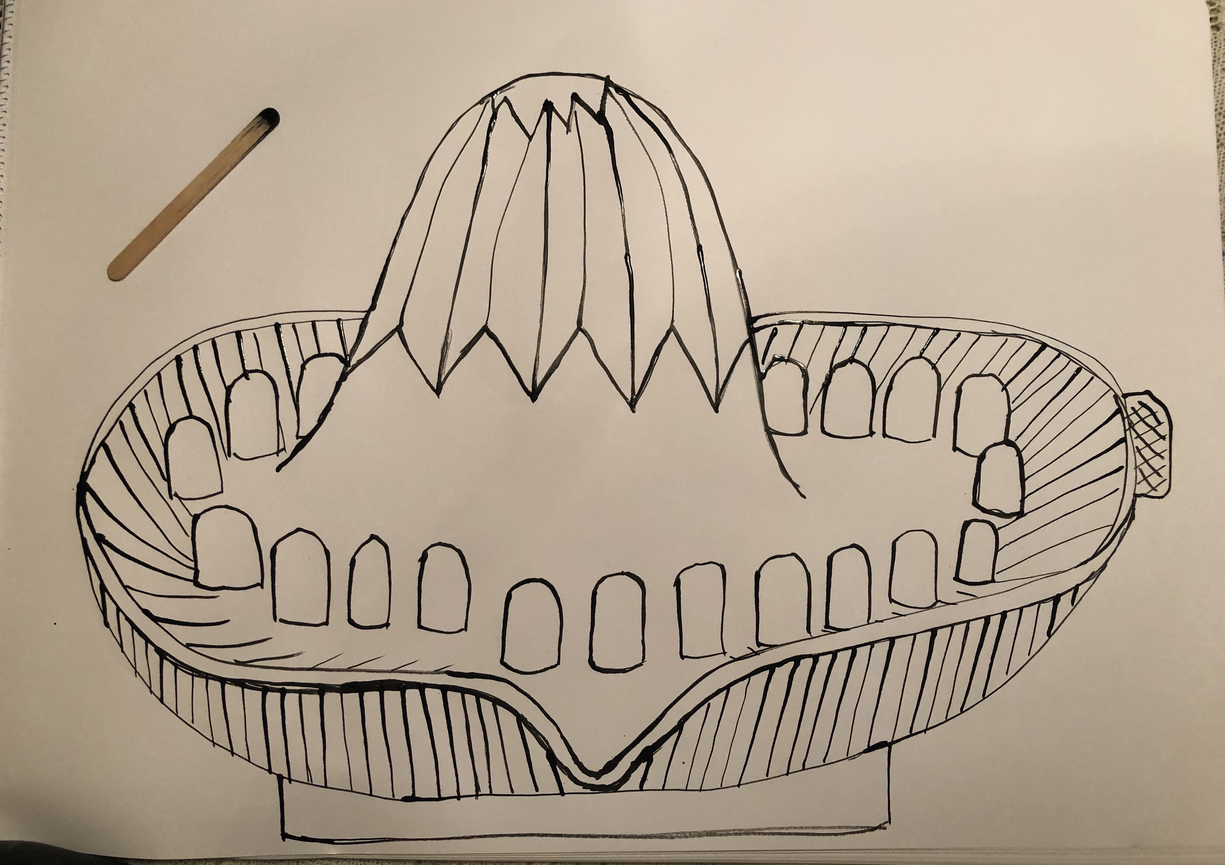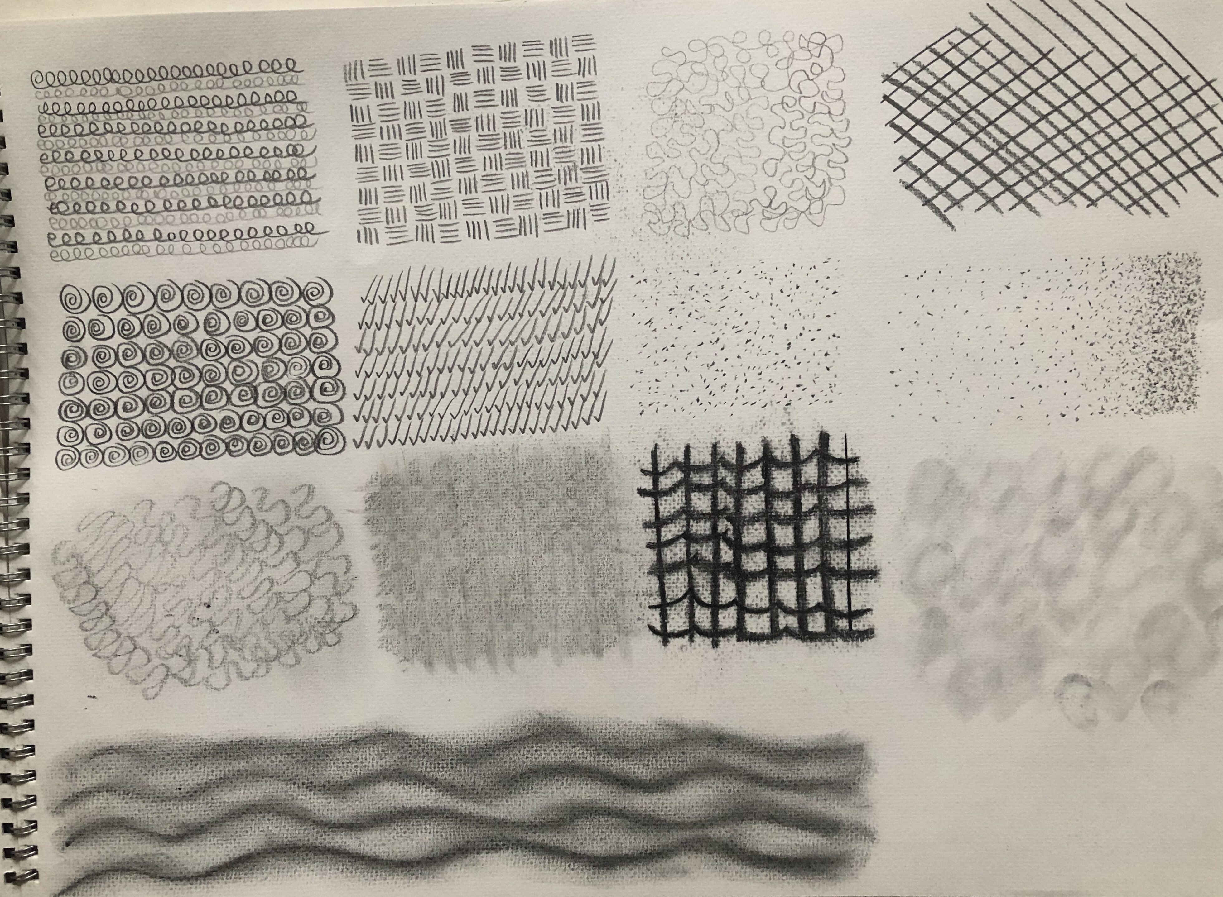 I enjoyed trying to sketch blocks and diamond shapes to replicate netting, the middle sketch had a three dimensional look to it.