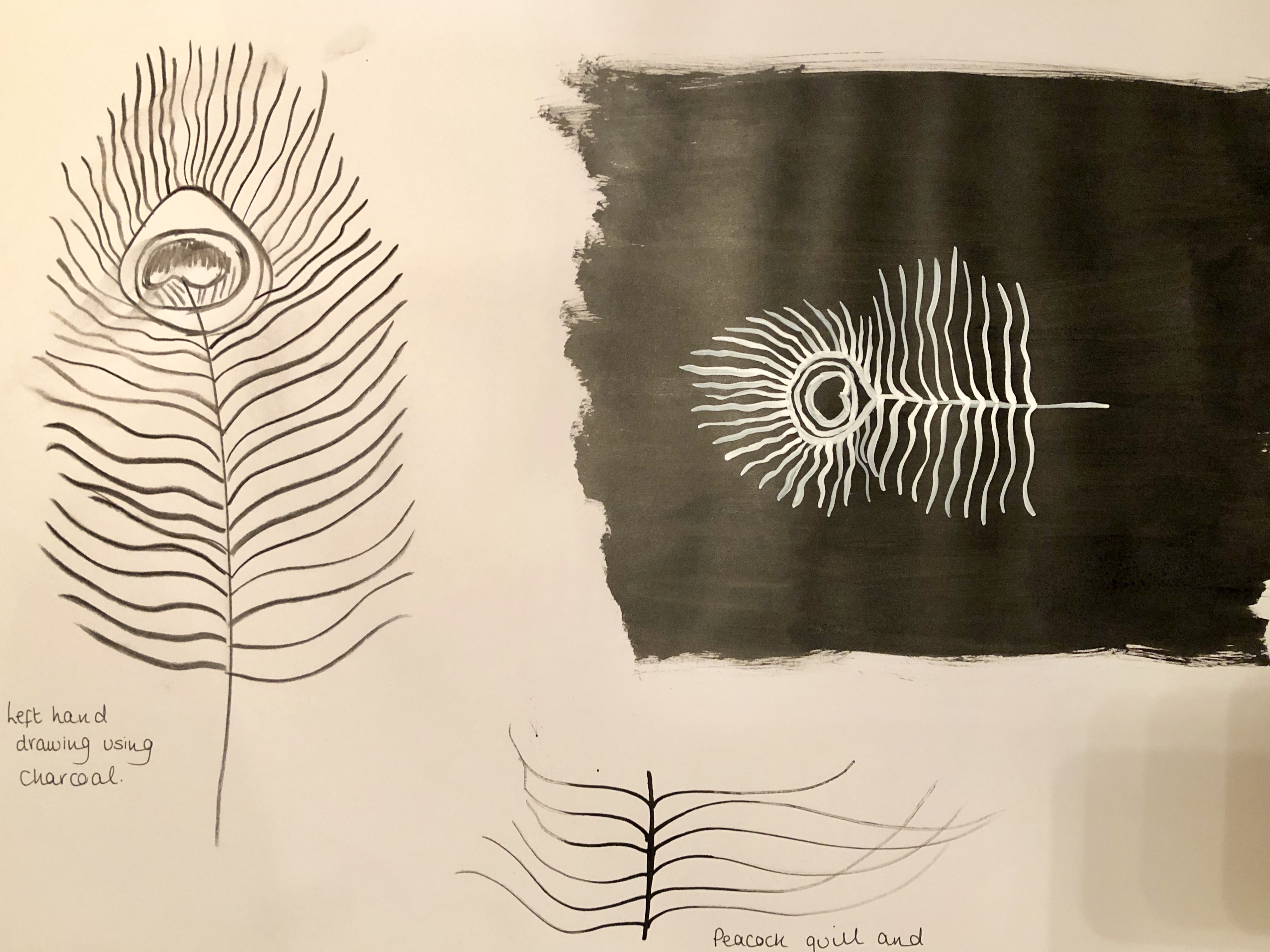 I chose the piece of seaweed to photograph as it was so delicate and reminded me of the Tree of Life, it is fascinating to find such fragile life washed up on the shoreline, especially as I found this the following day after a storm. The reverse monochrome sketch worked very well and I do need to practice this more as it is a very bold image and I found it to be very successful and gave a much more detailed approach than I initially thought it would.