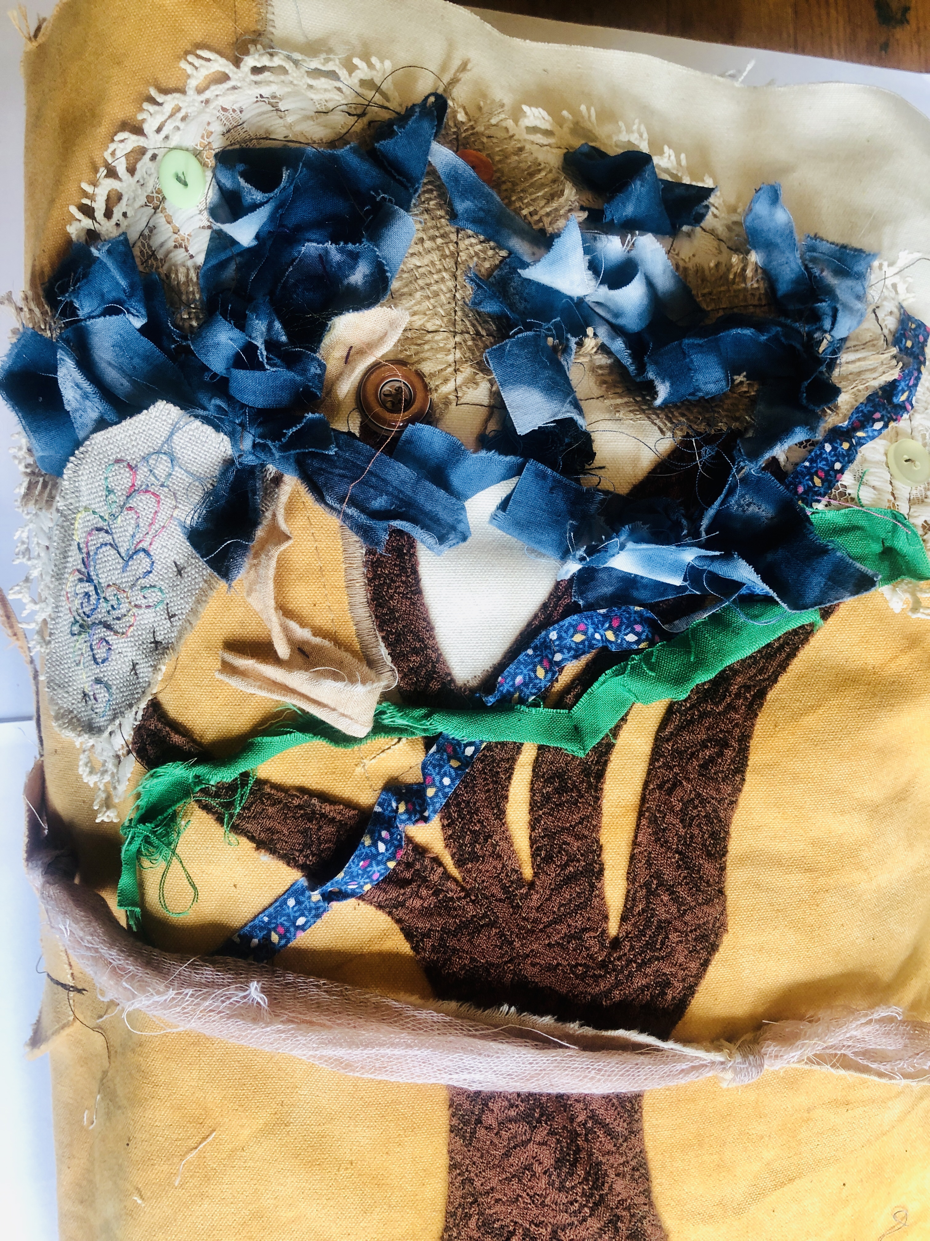 This was where I felt very disheartened and disappointed by OCAs decision to no longer send work to tutors to assess and for students to photograph their textile work and upload it onto the learning log. I had worked so hard on this piece and I do not see how a photograph can convey texture and movement. It has made me rethink whether I go on to do the full degree should the new way of submitting work for textiles continue. I really wanted my tutor to see it!