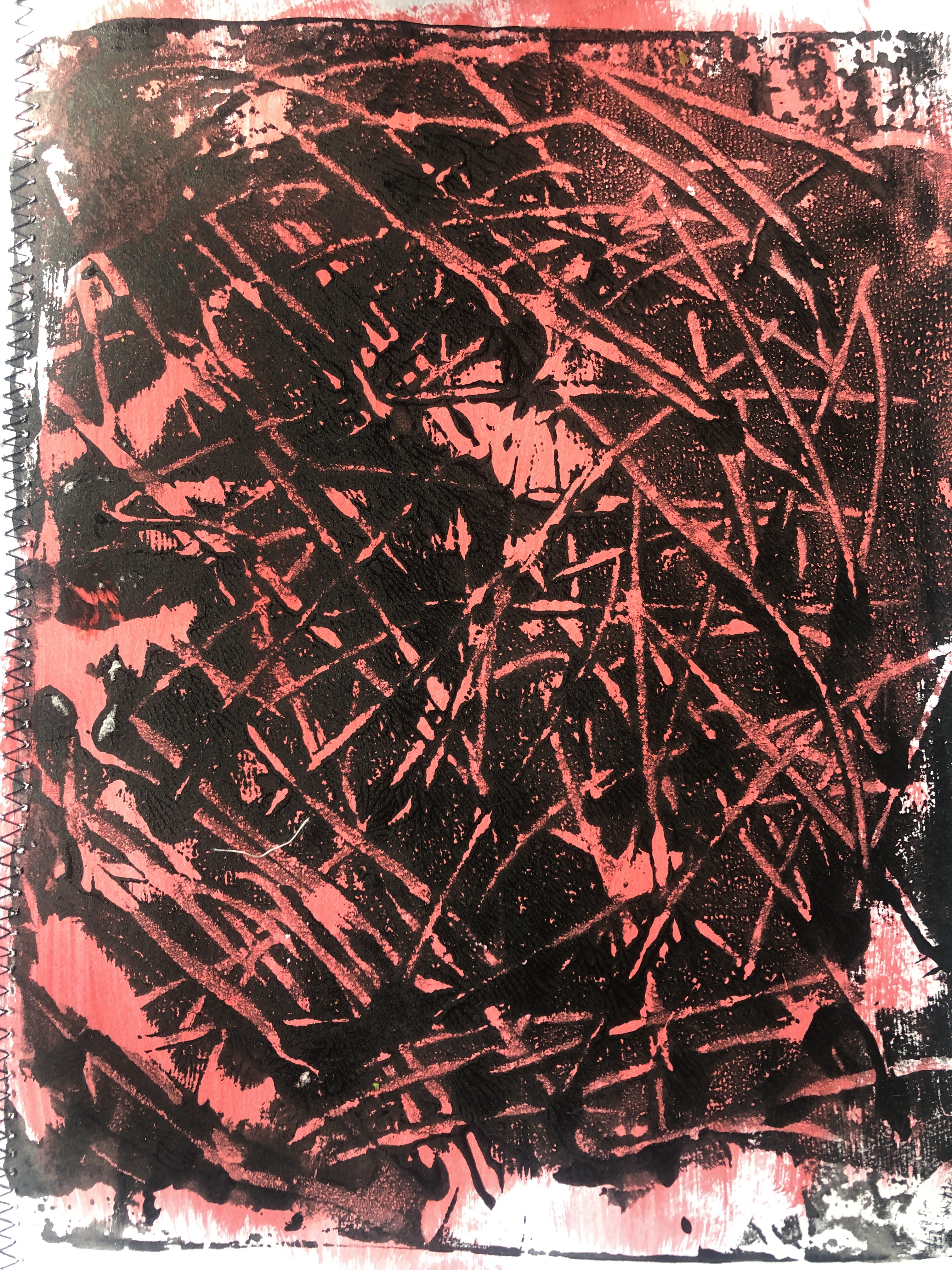 I finished the sketchbook exercise by using the string dipped in paint and I mixed it with PVA glue to try and create texture and depth. I also created a messy background as a border for the finished piece. I liked the effect but felt it was too simple and not the look I had been hoping for. I felt it was time to move on to the next exercise as I had exhausted most of my ideas here.