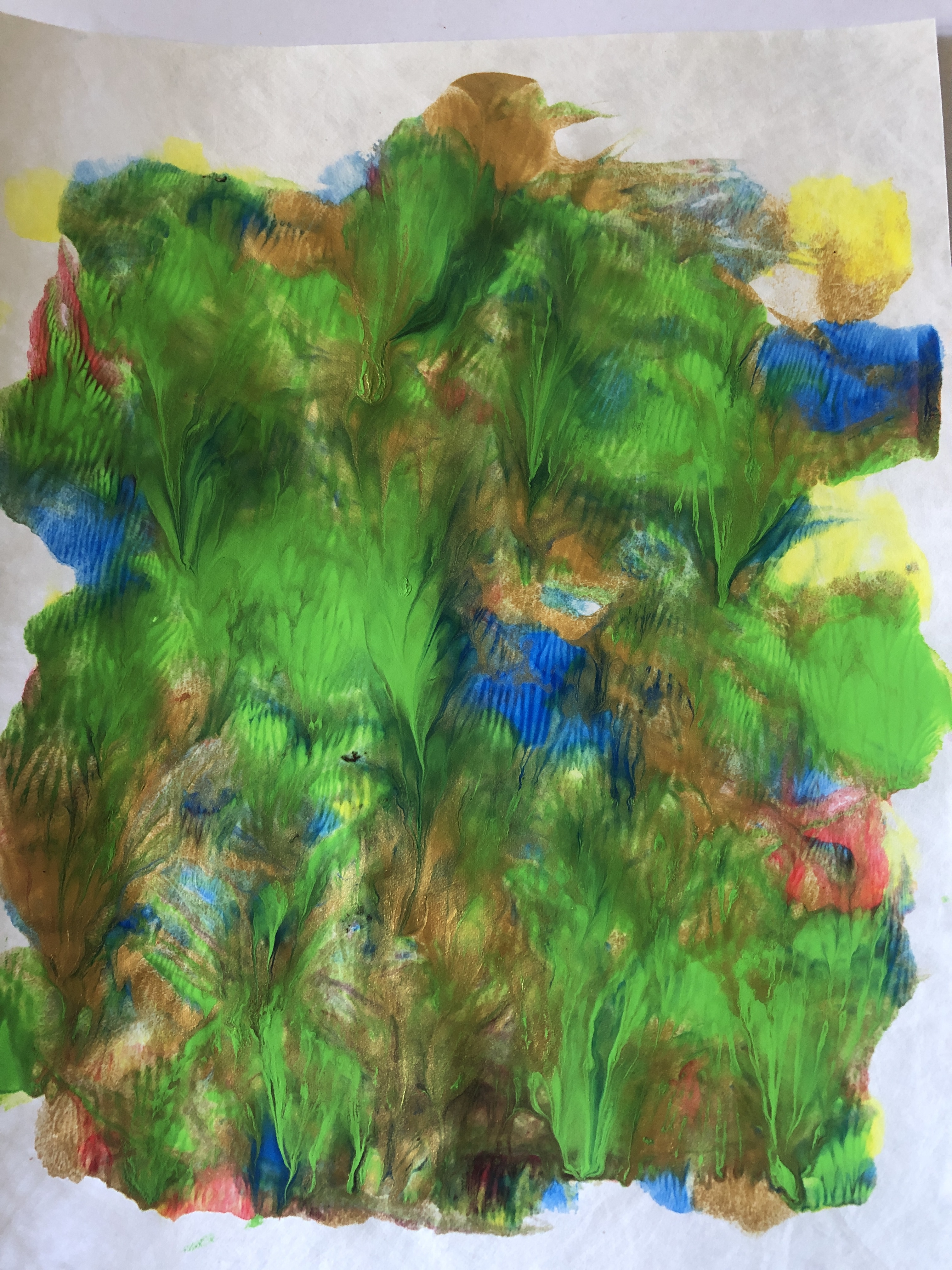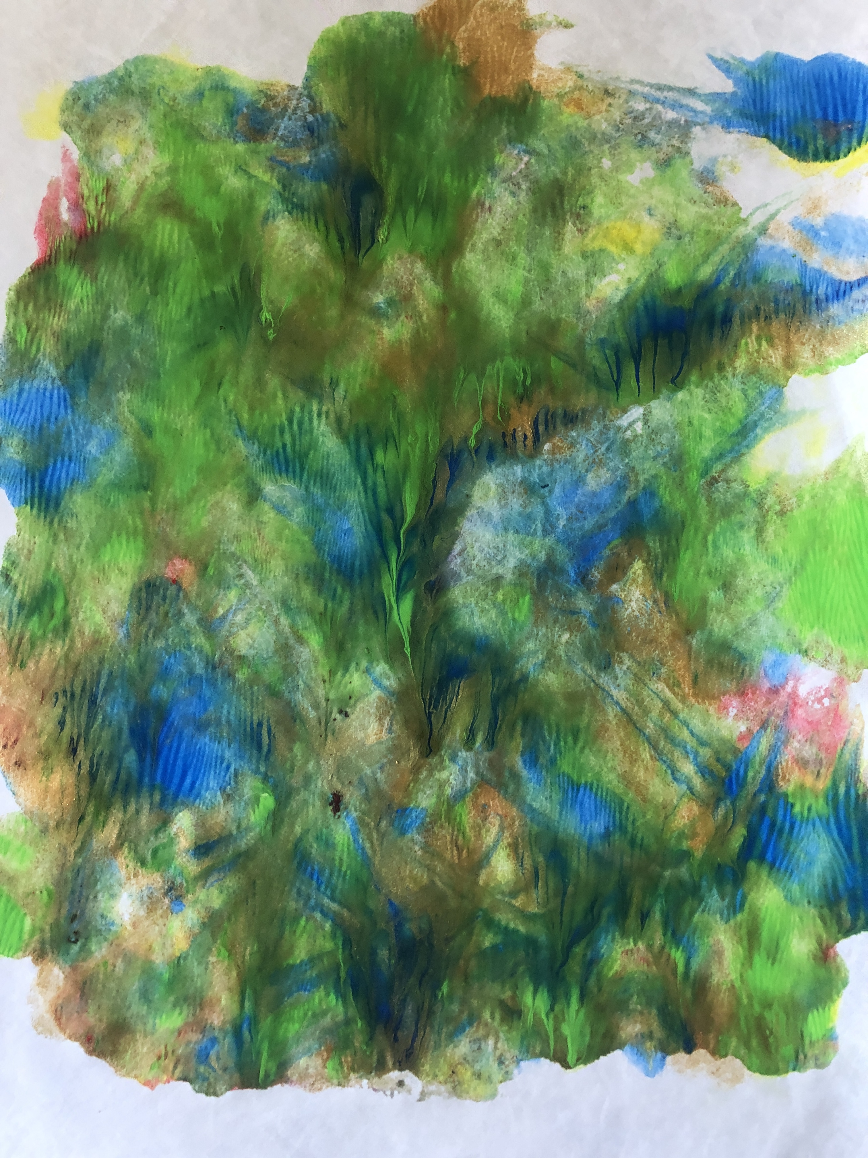 I painted the jug again and this time used a stick, this painting was my favourite as it had the “melting” aspect of Twombley’s rose and it looked more textured and almost three dimensional. The fourth painting of the jug was painted using a cork and although I liked the way that the hues were distributed, I did not feel it was successful.